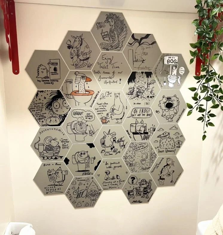 …and the toilet time wall! My tile is bottom right - next to Charlie Mackesy’s contribution - what an honour!